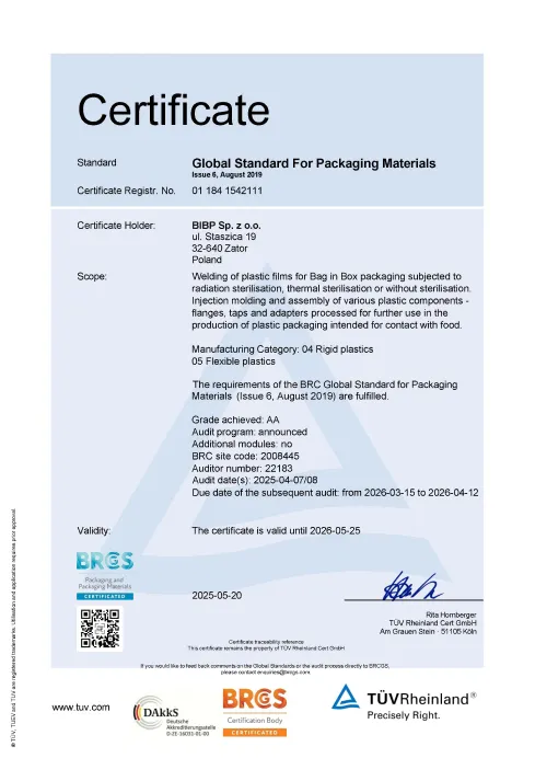 Jako rodzinna firma i technologiczny partner oferujemy opakowania Bag in box (2–220 l), stworzone przez nasz zespół inżynierów z myślą o bezpieczeństwie produktu, wygodzie użytkowania i dbałości o środowisko. Nasze rozwiązania sprawdzają się w branży spożywczej, chemicznej i farmaceutycznej. Elastycznie łączymy standardowe produkty z indywidualnymi projektami, dostosowując się do unikalnych wymagań każdego klienta